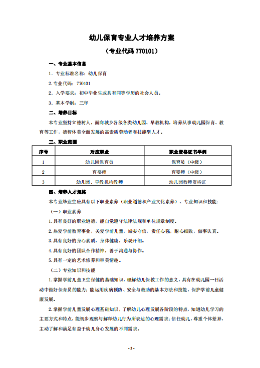 幼兒保育專業人才培養方案